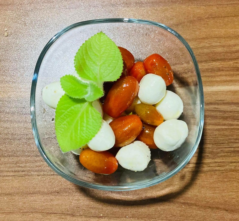 Aus dem Olivenöl, etwas Salz, Pfeffer, einem Spritzer Zitronensaft und wer möchte einer Prise Stevia, ein Dressing herstellen.
